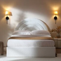- Upholstered in premium textured fabric composed of chenille yarn boasting two tone details