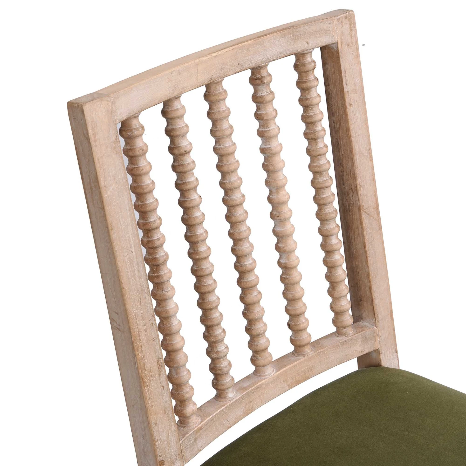 - The chairs have padded seat upholstered with moss green velvet touch fabric.