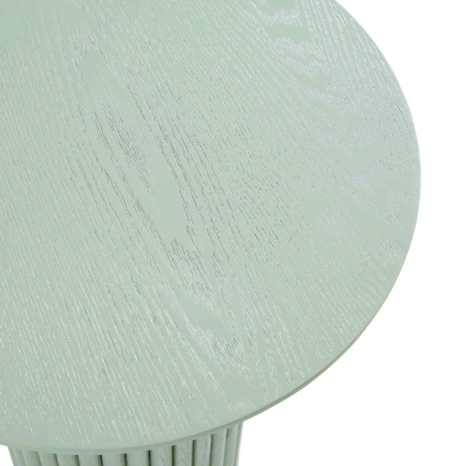 - Crafted from solid and and oak veneer and finished with sage green paint, each table has its unique natural grains and knots.